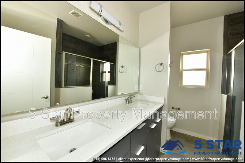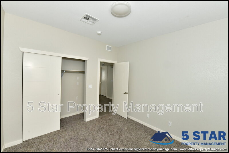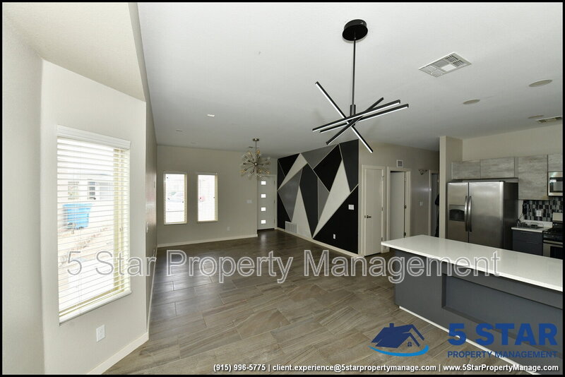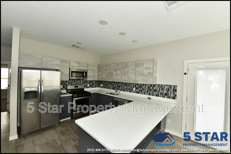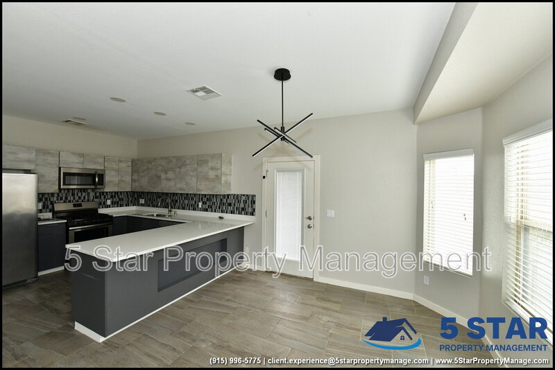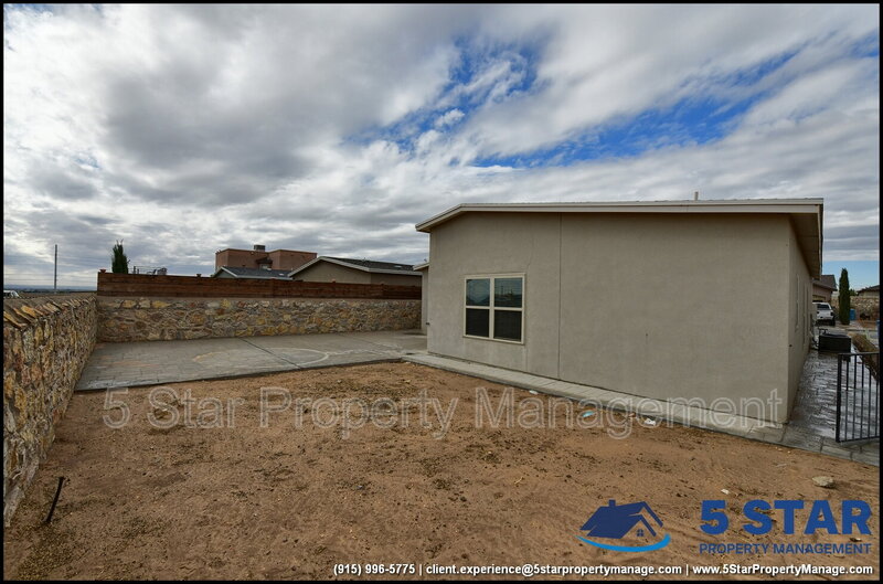 Charming and spacious, this delightful three-bedroom, two-bathroom home radiates a comfortable, lived-in appeal. Greeted by a warm living room, the open layout seamlessly connects to a functional kitchen equipped with all the essentials for home cooking. The split floor plan ensures privacy for the restful primary bedroom, complete with an ensuite bath. A dedicated laundry area adds everyday convenience. The fenced backyard is a blank slate ready for a garden, play area, or peaceful patio set. Nestled in a friendly neighborhood, you’re only a short drive from Fort Bliss, the University of Texas at El Paso, and the vibrant cultural offerings of downtown El Paso. Deposit-Free Renting service to Obligo qualified renters, fees may apply.
