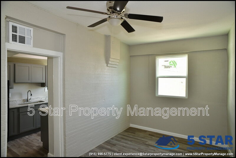 Discover this beautifully updated 1-bedroom, 1-bath apartment downtown, blending contemporary charm with practical amenities. This stylish space has been thoughtfully renovated, featuring modern appliances and the comfort of refrigerated air for every season. Situated just moments from Scenic Drive and US-54, this home provides the ideal mix of serene surroundings and convenient access to El Paso's vibrant destinations. Whether you're relaxing in the light-filled interiors or venturing out to enjoy the city, this apartment delivers everything you need for a comfortable lifestyle. Deposit-Free Renting service to Obligo qualified renters, fees may apply. For Showings information and availability, please call at 915-320-7027 By: 5 Star Property Management | EL PASO Texas Rentals | EL PASO Property Management | Property Management in EL PASO *Important: Information is deemed reliable but not guaranteed. All information is submitted subject to errors, omissions, change of price before the lease, or withdrawal without notice.