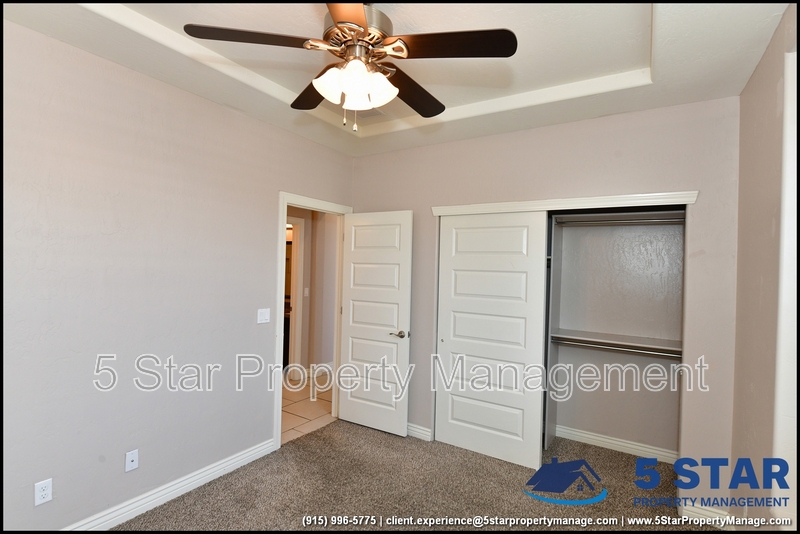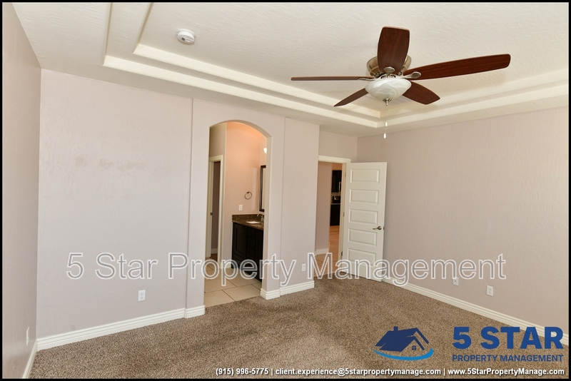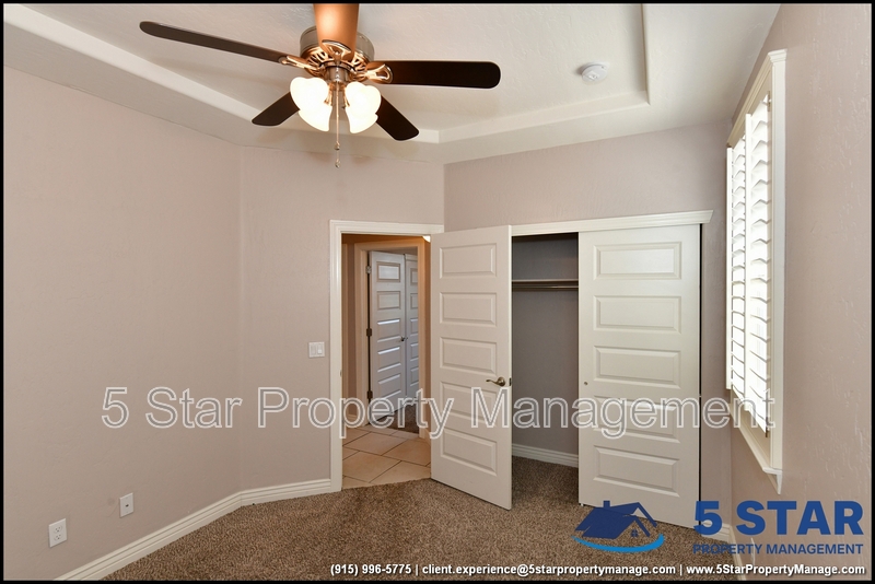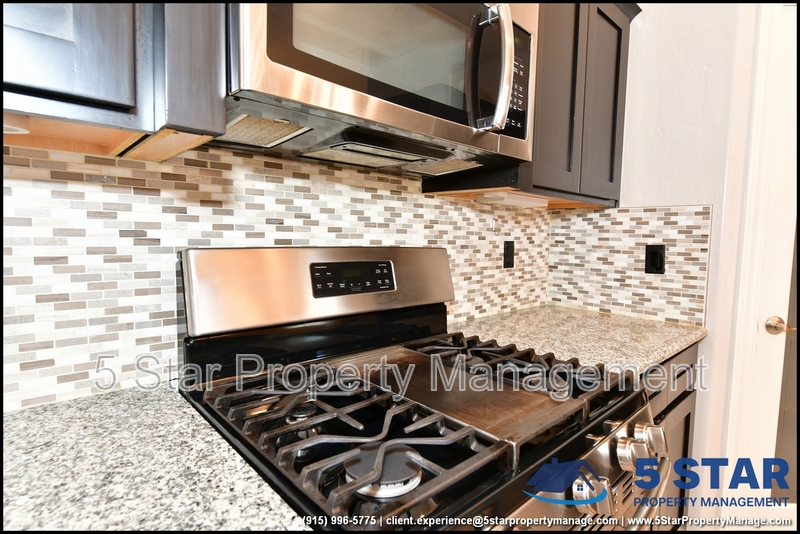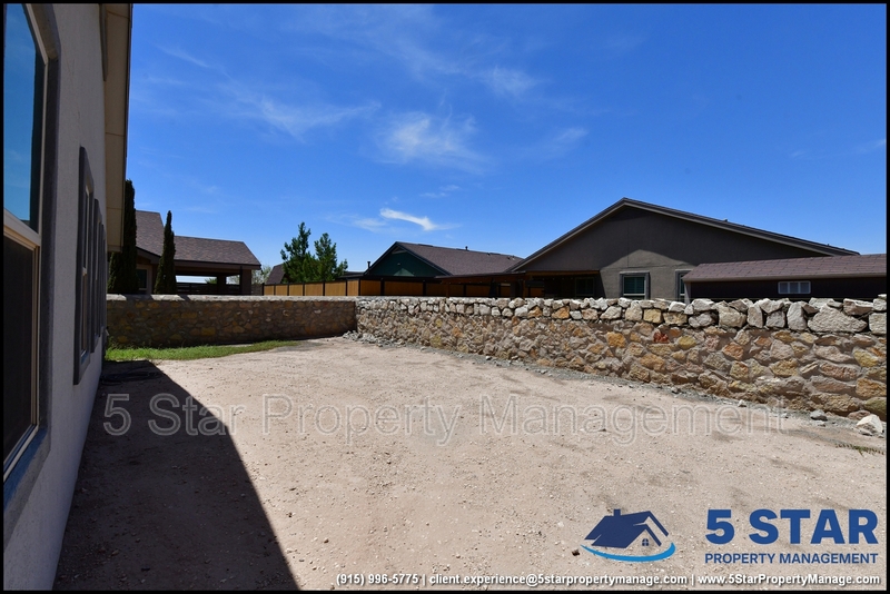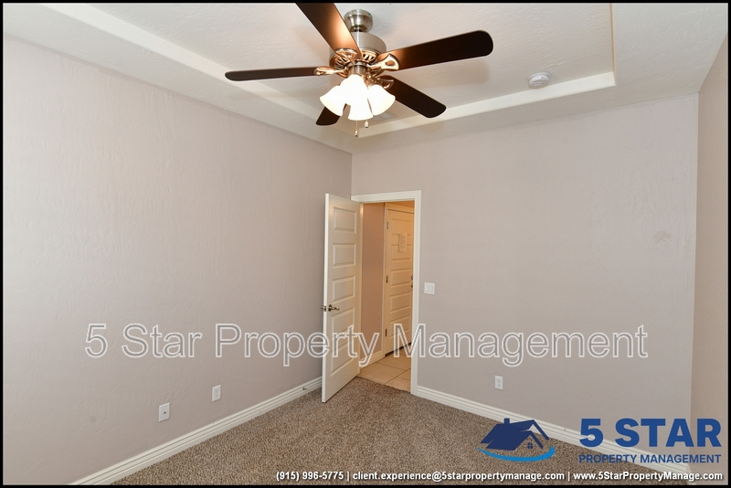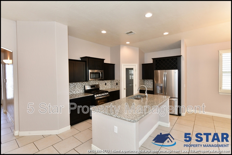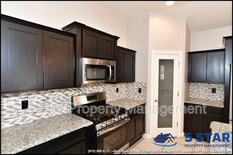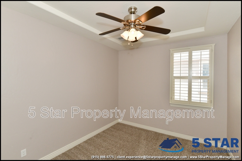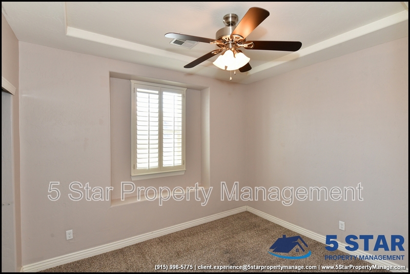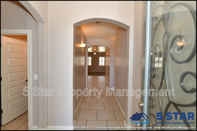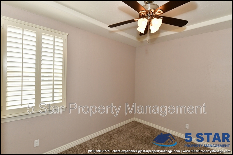 Just minutes from El Paso's top outdoor playgrounds and dining hotspots, this bright 3-bed, 2-bath home showcases clean lines and intentional textures throughout. Enter into a sunlit foyer that opens to sweeping tile floors and an open-plan kitchen. Granite counters wrap around a peninsula island, creating distinct prep and serving zones framed by a custom glass-and-stone backsplash. Above, wired lighting and a stainless range hood highlight the cook's domain. The primary suite features a dual-basin vanity and a spa-style bath with a freestanding garden tub and glass-enclosed shower. Two additional bedrooms enjoy plush carpeting and easy hallway access to a second full bath. A covered patio extends living outdoors, ideal for weekend barbecues. With John Drugan Elementary, Americas High School, parks, shopping, and hospitals all just a short drive away—and instantaneous access to Loop 375 and I-10—this is homebase for every chapter of your life. Deposit-Free Renting service to Obligo qualified renters, fees may apply. For Showings information and availability, please call at 915-320-7027 By: 5 Star Property Management | EL PASO Texas Rentals | EL PASO Property Management | Property Management in EL PASO *Important: Information is deemed reliable but not guaranteed. All information is submitted subject to errors, omissions, change of price before the lease, or withdrawal without notice.