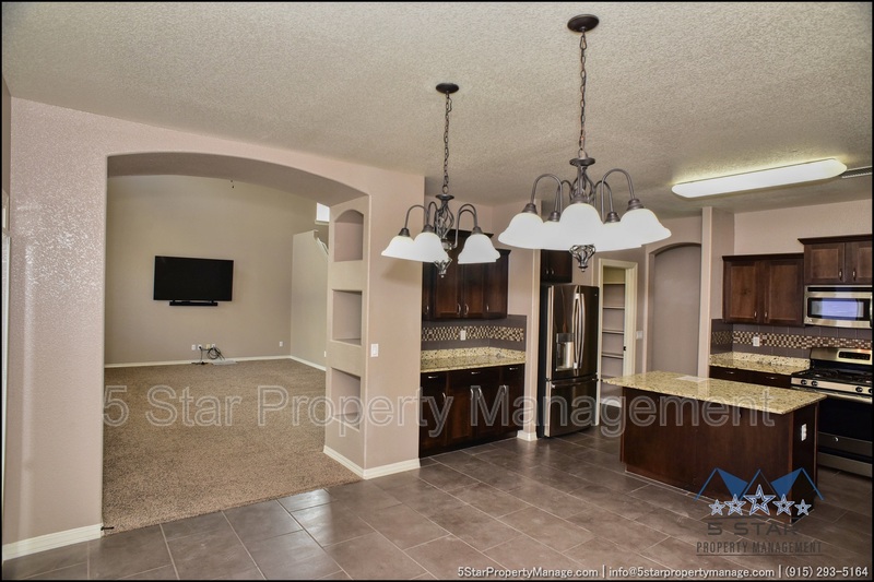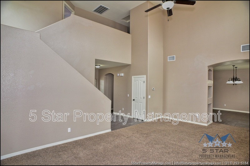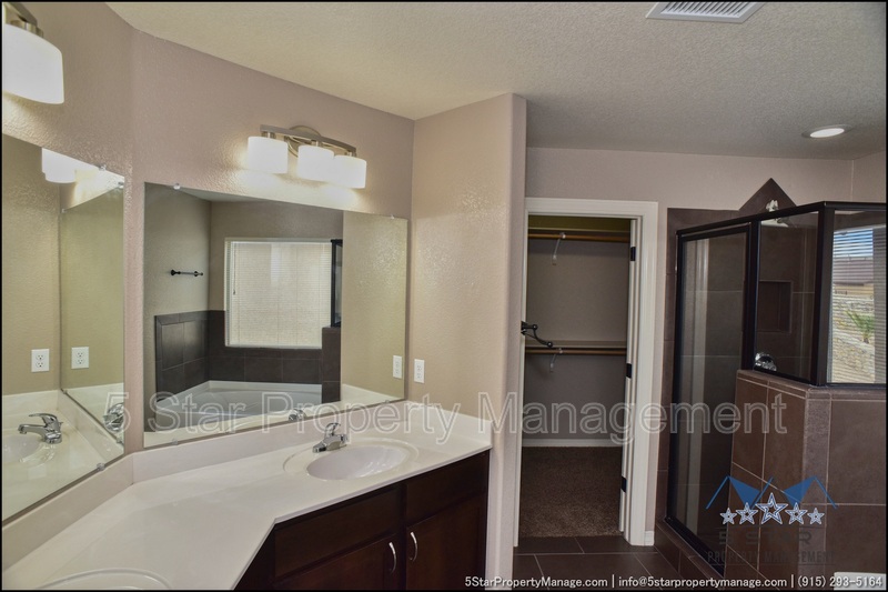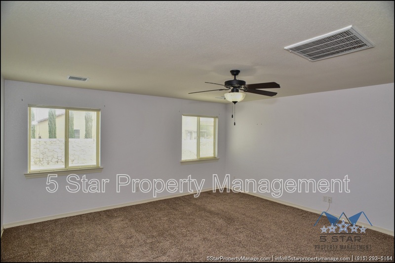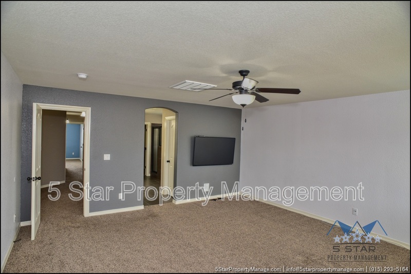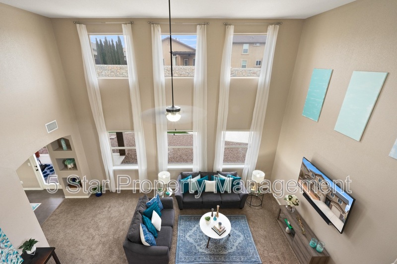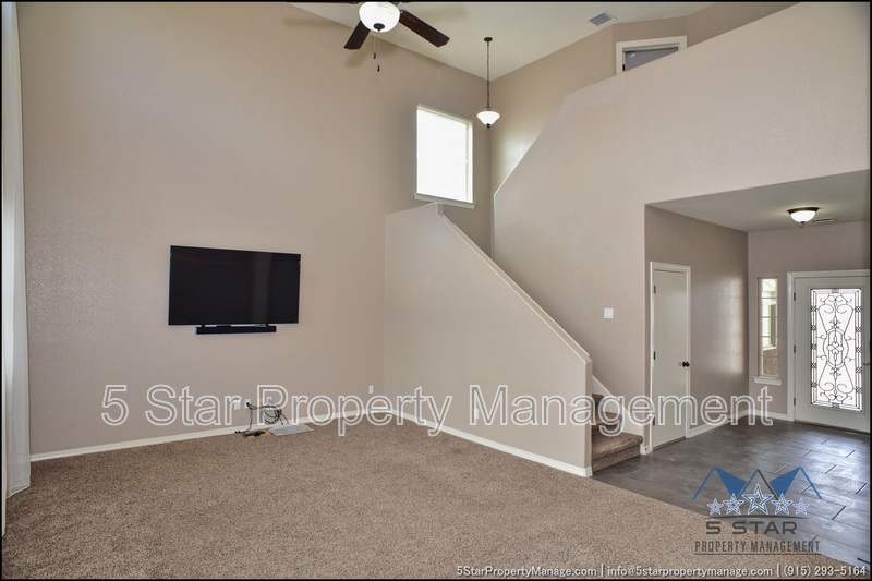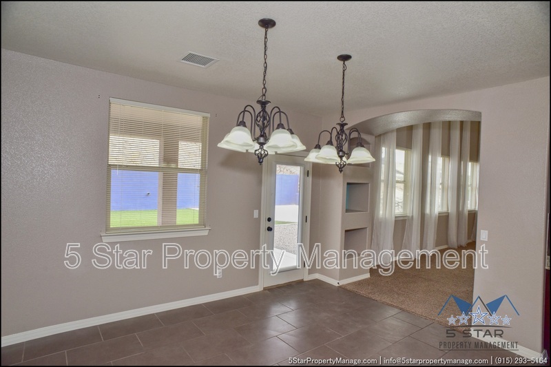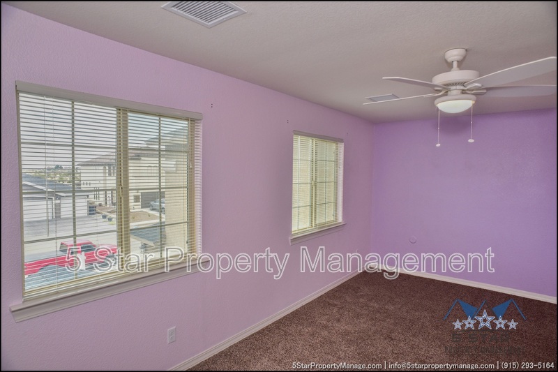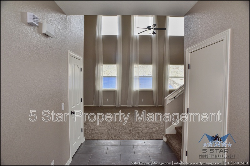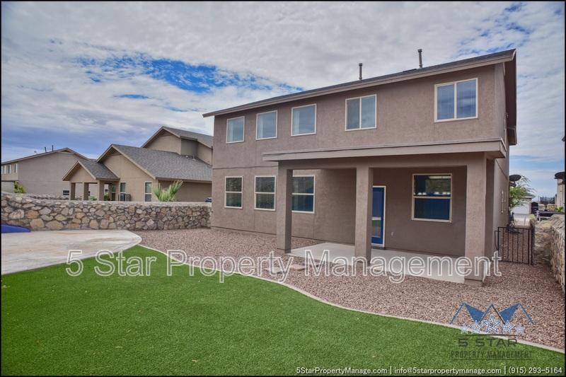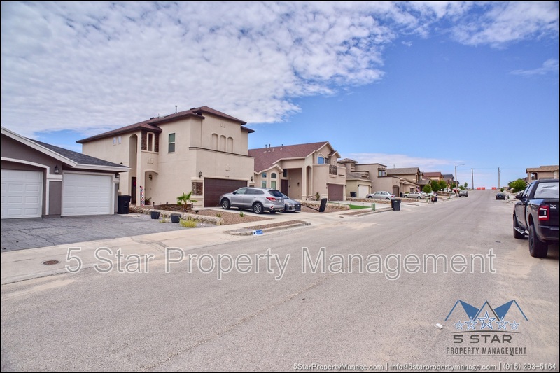 This inviting 5-bedroom, 3-bathroom home in Horizon City offers a perfect blend of space and style, ideal for growing families or those who love to entertain. The bright, airy living area welcomes you with warm natural light, neutral tones, and an open layout that flows effortlessly into the dining space and kitchen. Sleek countertops, ample cabinetry, and stainless steel appliances make meal prep a breeze, while the adjacent breakfast nook is perfect for casual mornings. Upstairs, the generous primary suite provides a peaceful retreat with a walk-in closet and a well-appointed ensuite bath. Four additional bedrooms offer flexibility for family, guests, or a home office. Outside, the sizable backyard is a blank canvas for outdoor gatherings, gardening, or play. Located near schools, parks, and shopping, this home combines convenience with comfort. Deposit-Free Renting service available to Obligo qualified renters, fees may apply.