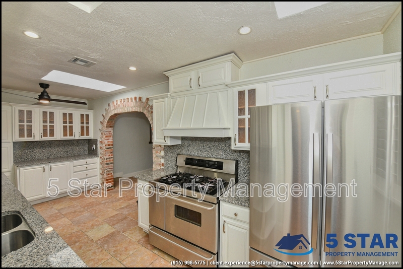 Charming 5 beds and 4 baths home offering over 3,000 sq ft of beautifully designed living space in historic Manhattan Heights. This unique property features a private suite and a versatile basement with an additional level, ideal for storage or creative uses. Inside, enjoy expansive living areas with gleaming hardwood floors and a chef's kitchen complete with stainless steel appliances, granite countertops, and a distinctive brick archway leading to a welcoming family room. The outdoor area is a true highlight with a sparkling pool—maintenance included in the rent—providing the perfect spot for relaxation and enjoyment. The spacious covered patio is ideal for alfresco dining and entertaining. Additional amenities include a custom air-conditioned dog house for added comfort. Deposit-Free Renting service to Obligo qualified renters, fees may apply. If a property doesn't offer a self-tour option, you may need to coordinate with a local licensed agent to schedule a viewing. Here's a guide on how to search for a local agent: https://sites.google.com/5starpropertymanage.com/applicant-and-showings-guide/showings By: 5 Star Property Management | EL PASO Texas Rentals | EL PASO Property Management | Property Management in EL PASO *Important: Information is deemed reliable but not guaranteed. All information is submitted subject to errors, omissions, change of price before the lease, or withdrawal without notice.