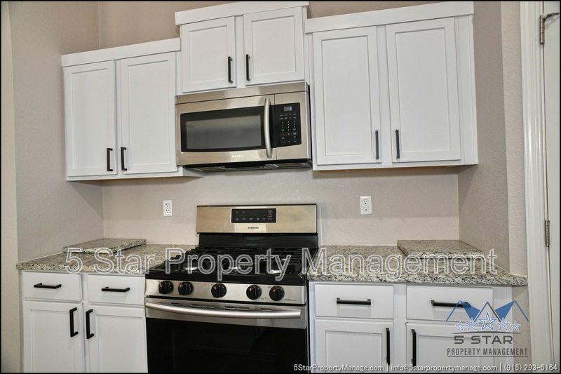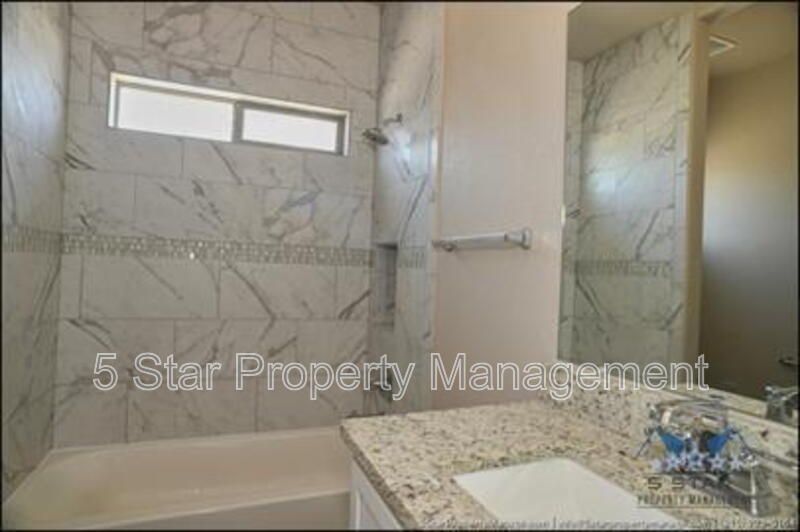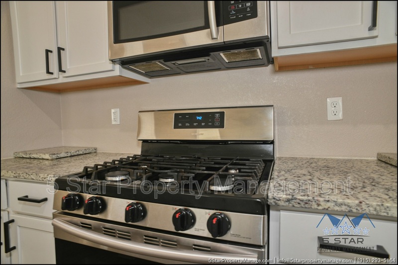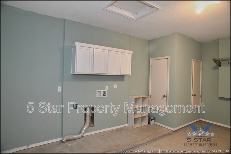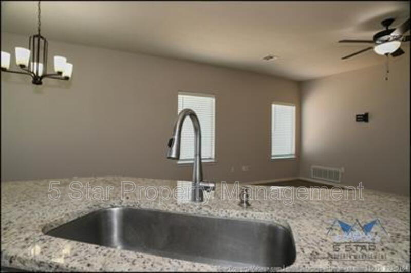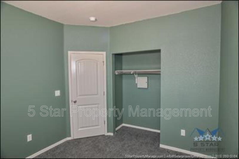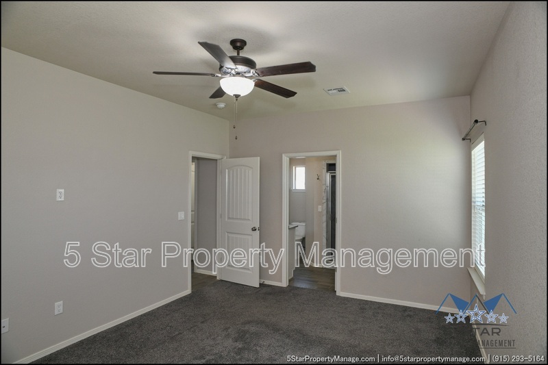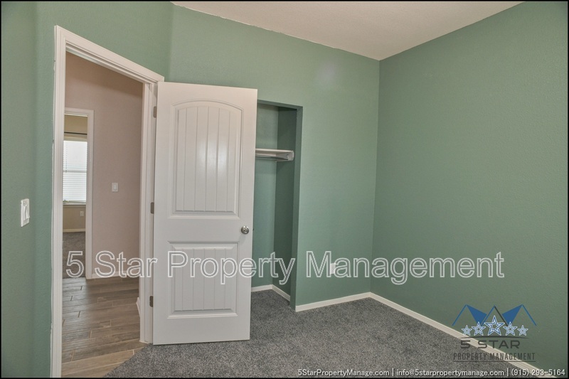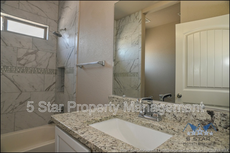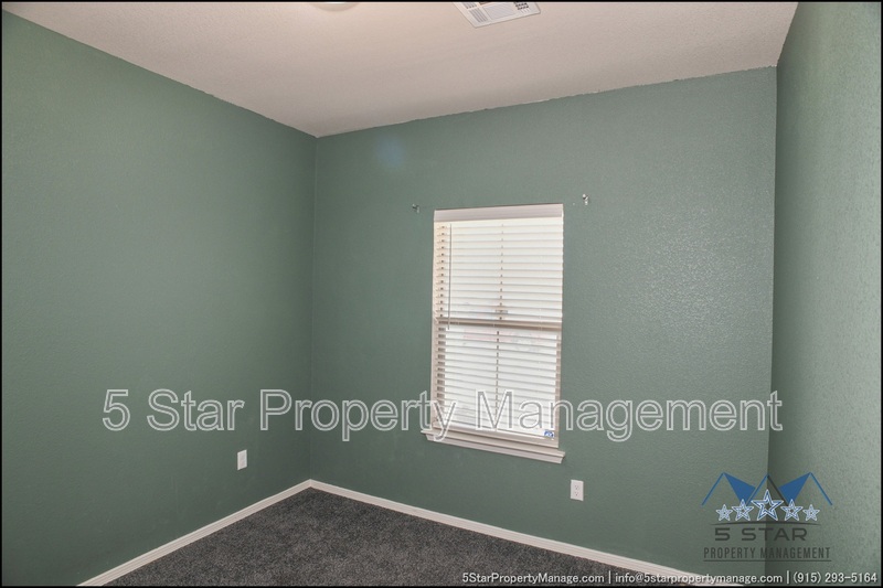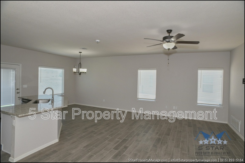 Stunning and well-maintained 3-bedroom, 2-bathroom home, nestled in a peaceful cul de sac with a large backyard, ensuring privacy. The home's pleasing finishes and light color scheme create a welcoming environment, enhanced by simple yet elegant granite countertops throughout. The unique farmhouse-style exterior adds a touch of charm, while the open-plan living, dining, and kitchen area, complete with a large island and stainless steel appliances, allows for easy entertaining. The master bedroom comes with an ensuite bathroom for added convenience. The expansive backyard, complete with a patio, brick fire pit, and landscaping, offers ample outdoor space. Deposit-Free Renting service to Obligo qualified renters, fees may apply. For Showings information and availability, please call at 915-320-7027 By: 5 Star Property Management | SOCORRO Texas Rentals | SOCORRO Property Management | Property Management in SOCORRO *Important: Information is deemed reliable but not guaranteed. All information is submitted subject to errors, omissions, change of price before the lease, or withdrawal without notice.