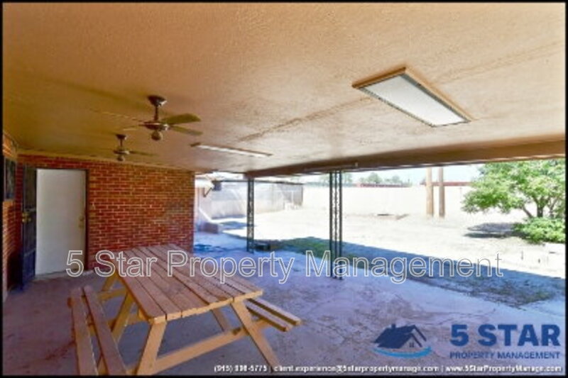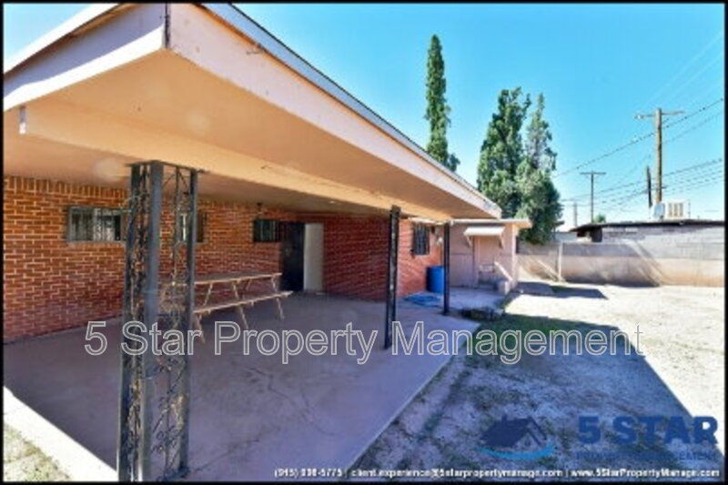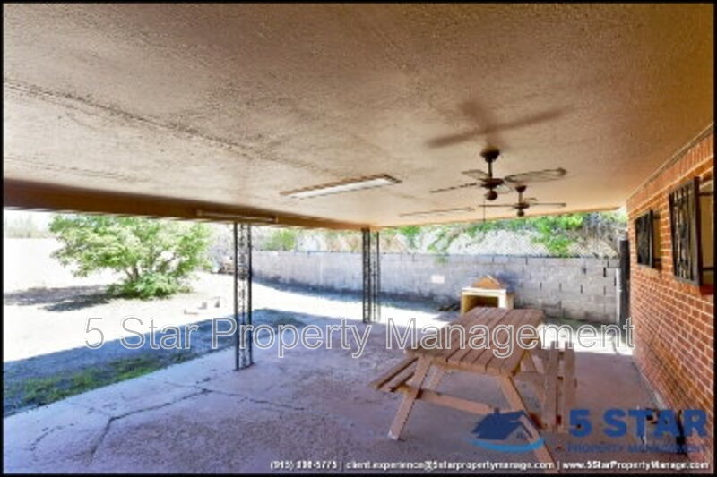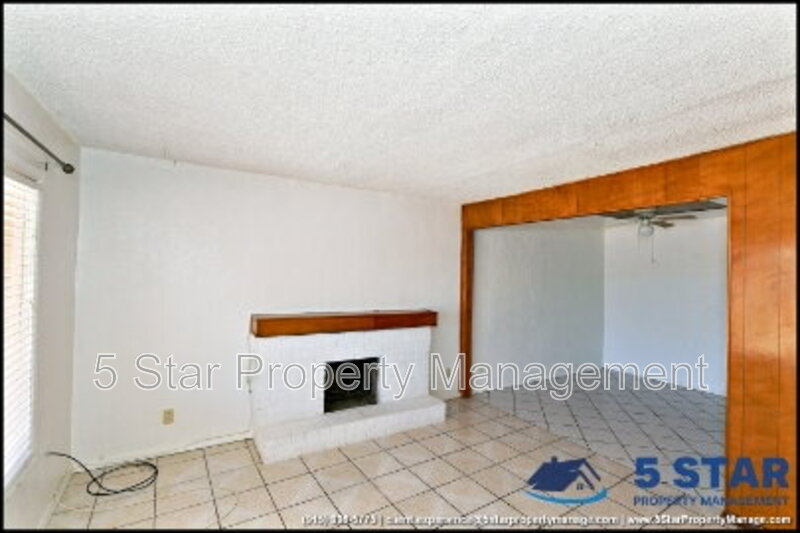 Beautifully timeless, this 3-bedroom, 2-bath residence is set behind a gated front yard with mature landscaping and a welcoming brick façade. The interior features a cozy living room centered around a classic painted fireplace, with large front-facing windows providing lovely natural light. The adjoining dining area is framed by wood accents and leads into a spacious kitchen fitted with generous cabinetry, a gas cooktop, built-in appliances, and a large skylight that brightens every corner. Each bedroom offers ceiling fans and tiled flooring, ensuring year-round comfort. Outdoors, enjoy a vast backyard with a covered patio, picnic seating, and ceiling fans—an inviting space for any time of day. Located in the Lower Valley near Ascarate Park and shopping along North Loop Drive. Deposit-Free Renting service to Obligo qualified renters, fees may apply. For Showings information and availability, please call at 915-320-7027 By: 5 Star Property Management | EL PASO Texas Rentals | EL PASO Property Management | Property Management in EL PASO *Important: Information is deemed reliable but not guaranteed. All information is submitted subject to errors, omissions, change of price before the lease, or withdrawal without notice.