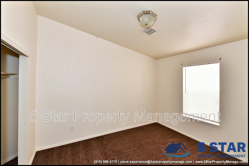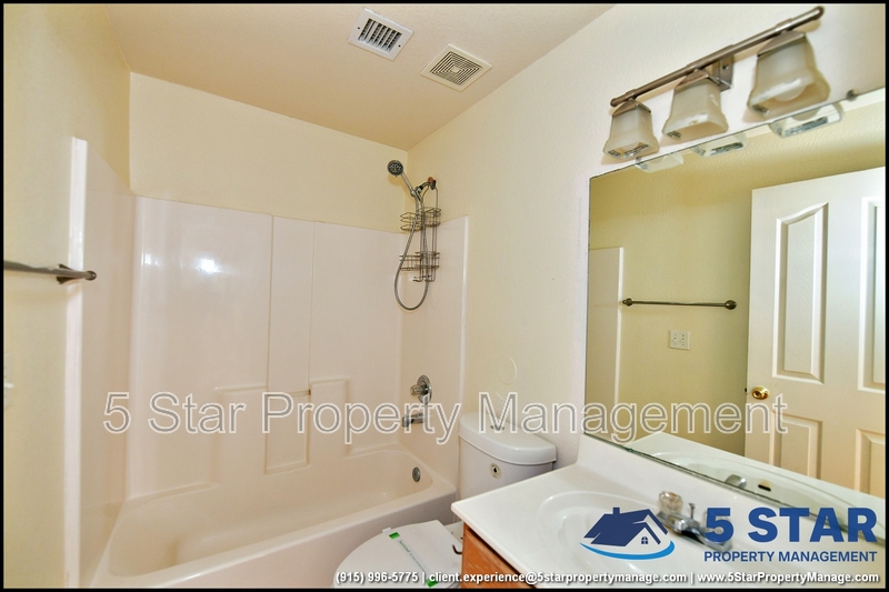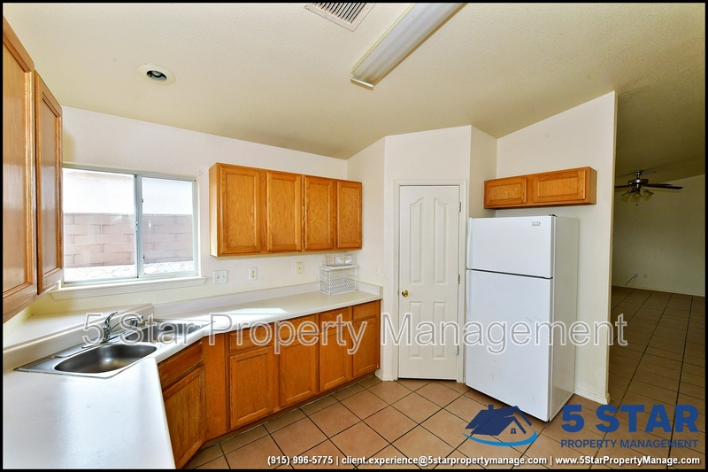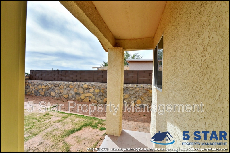 Elevated comfort meets everyday ease in this well-appointed single-story residence. A refreshing refrigerated air system keeps the interior cool during El Paso's warmer months, while the full appliance package including washer/dryer and one-car garage simplifies daily living. The master suite showcases tile flooring for effortless maintenance and an ambience of clean refinement. Nestled in a serene community with easy access to schools, shopping and quick routes to Fort Bliss/Biggs Field, this residence invites move-in readiness and peace of mind. Deposit-Free Renting service to Obligo qualified renters, fees may apply. For Showings information and availability, please call at 915-320-7027 By: 5 Star Property Management | EL PASO Texas Rentals | EL PASO Property Management | Property Management in EL PASO *Important: Information is deemed reliable but not guaranteed. All information is submitted subject to errors, omissions, change of price before the lease, or withdrawal without notice.