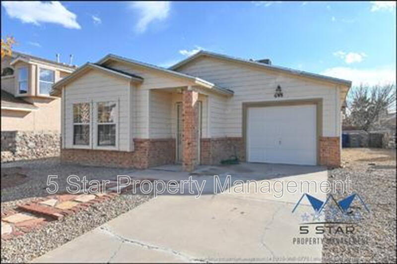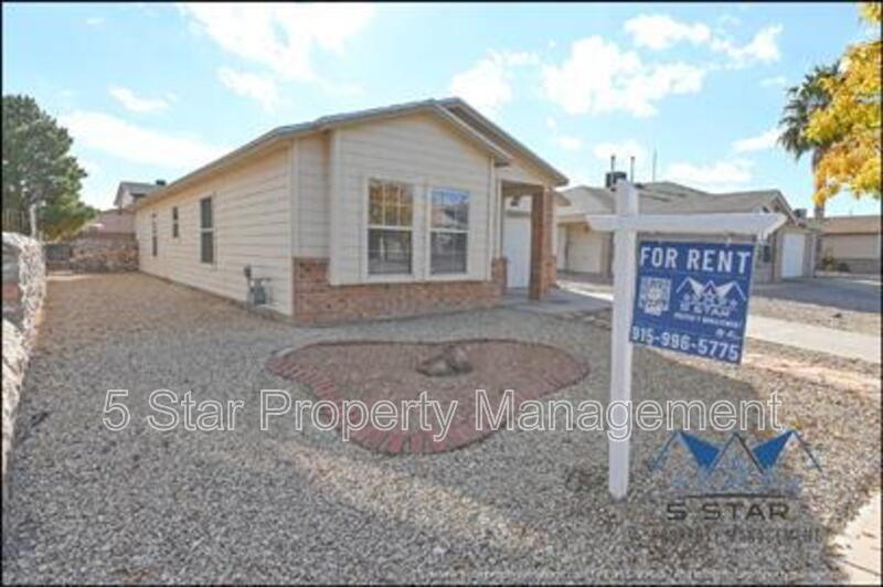 A clean-lined facade and desert landscaping set the tone for this efficient 3-bedroom, 2-bath single-story home. Inside, an open living-dining area spans durable tile floors, keeping upkeep simple and the flow effortless. The kitchen stays connected with a bar opening, ample cabinetry, and stainless refrigerator alongside range, microwave, and dishwasher. A cozy fireplace anchors the main living space for cooler evenings, while refrigerated cooling supports comfort when temperatures climb. The primary bedroom is positioned for privacy with an en-suite bath, and two additional bedrooms provide flexible space for a studio, office, or guest room. Laundry is streamlined with included washer and dryer. A spacious private backyard invites outdoor seating and weekend unwinding, plus the bonus of an attached garage. Close to Rio Plaza and convenient Doniphan-area routes for quick errands. Deposit-Free Renting service to Obligo qualified renters, fees may apply. For Showings information and availability, please call at 915-320-7027 By: 5 Star Property Management | EL PASO Texas Rentals | EL PASO Property Management | Property Management in EL PASO *Important: Information is deemed reliable but not guaranteed. All information is submitted subject to errors, omissions, change of price before the lease, or withdrawal without notice.