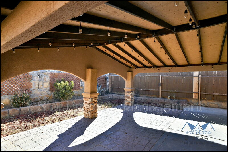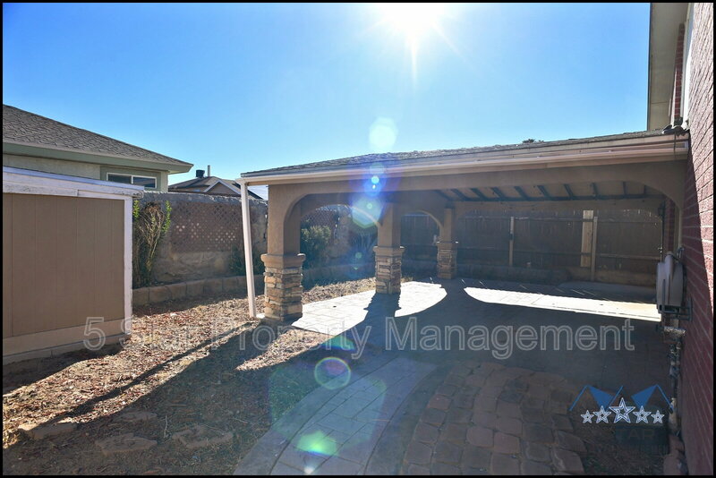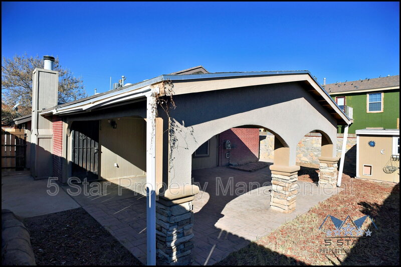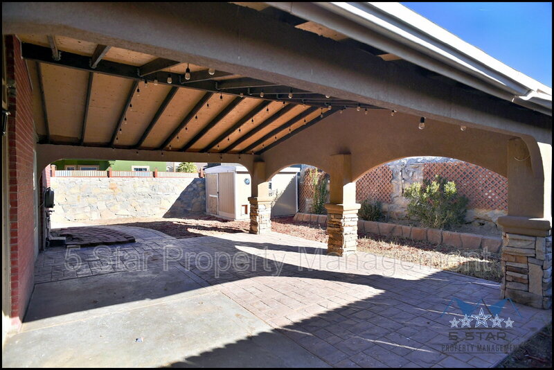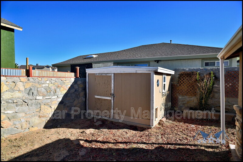 Spacious three-bedroom, two-bathroom residence feels immediately warm and expansive, thanks to an open concept illuminated by ample sunlight. The floor plan encourages easy living, connecting a comfortable living room with a charming fireplace to a dining area and a kitchen ready for home cooking. Durable flooring throughout ensures beauty and ease. The bedrooms are peaceful havens, providing quiet spaces to unwind at day's end. Outdoor enjoyment is ensured with a covered patio perfect for enjoying the El Paso breeze and a handy storage shed for added convenience. This home offers a balanced blend of indoor comfort and outdoor potential. Deposit-Free Renting service to Obligo qualified renters, fees may apply. Pet Details: Yes Max of 2; Cats or Dogs only; Weight limit 25 lbs Dog Fee ($300 age < 2-yr-old & and $150 >= age 2-yr-old) ; Cat Fee ($200 age < 2-yr-old & and $150 age >= 2-yr-old)