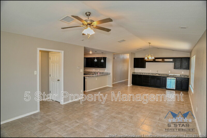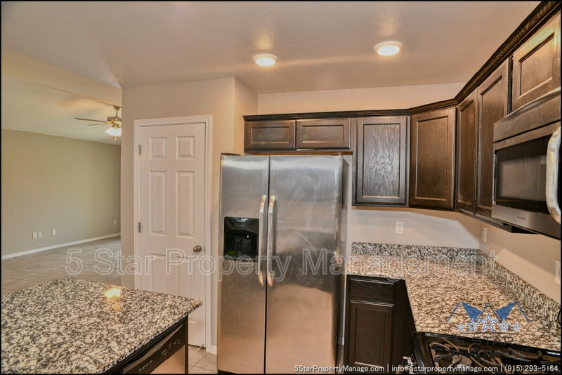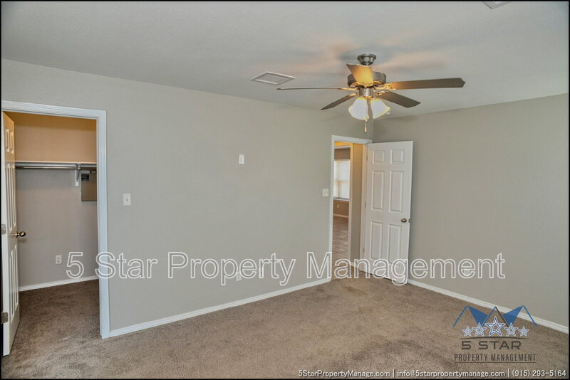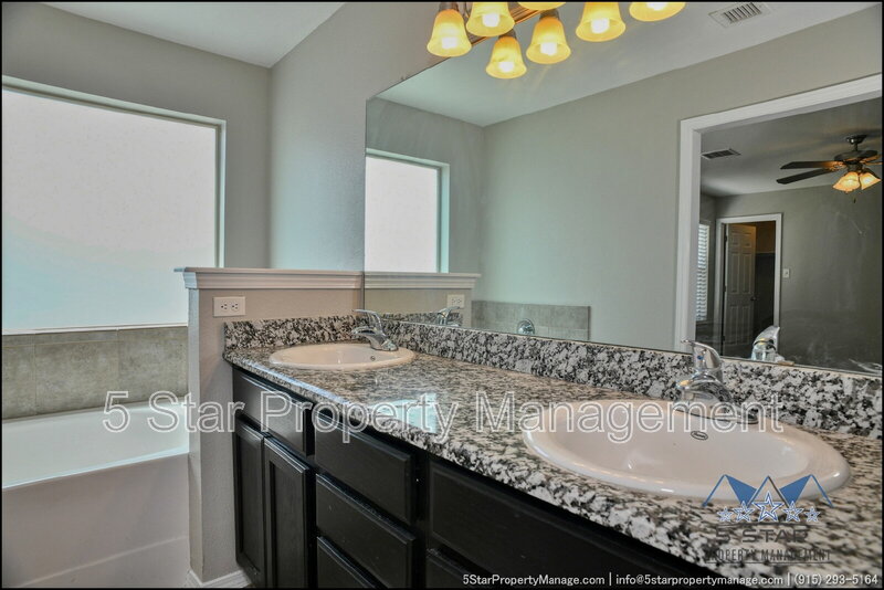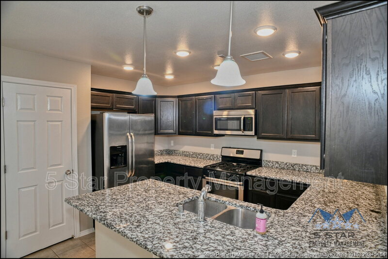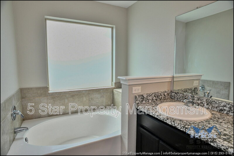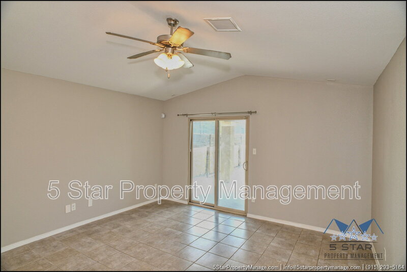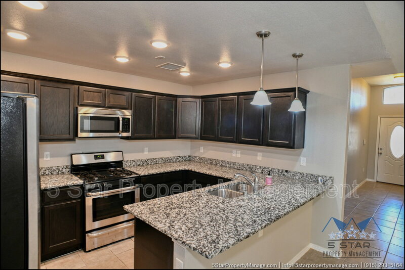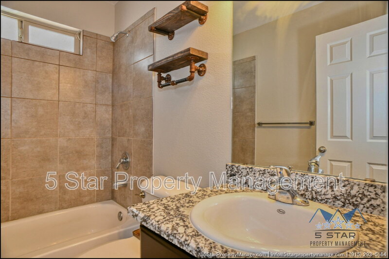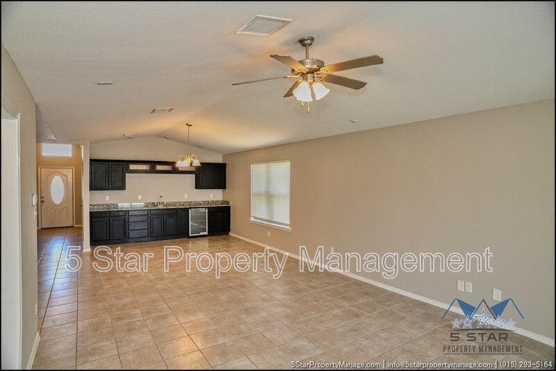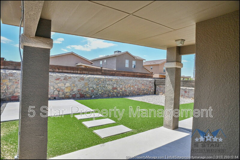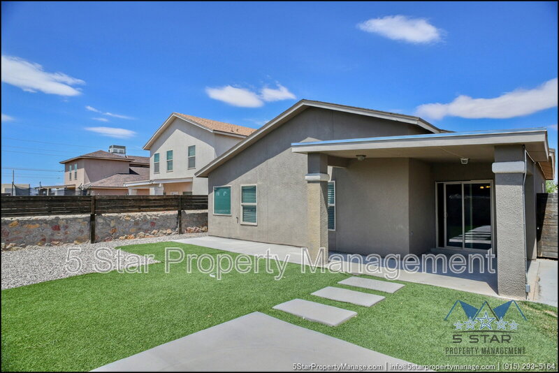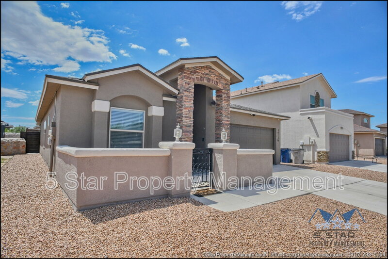 A bright three-bedroom, three-bath home that radiates a move-in ready appeal and functional design. This residence welcomes you with a warm, neutral palette and an open-concept living area, ideal for gathering with friends or enjoying quiet nights in. Culinary pursuits are a joy in the updated kitchen, which boasts plentiful cabinet storage, modern fixtures, and a layout that encourages conversation. Retreat to the privacy of the bedrooms, each offering ample closet space and natural light. The outdoor space provides a fantastic extension of the living area, perfect for weekend barbecues or a safe play area. Located in a friendly community, this home places you within a short drive of everyday necessities, popular restaurants, the scenic trails of the Franklin Mountains State Park, and major employers, blending residential calm with urban convenience. Deposit-Free Renting service to Obligo qualified renters, fees may apply. "