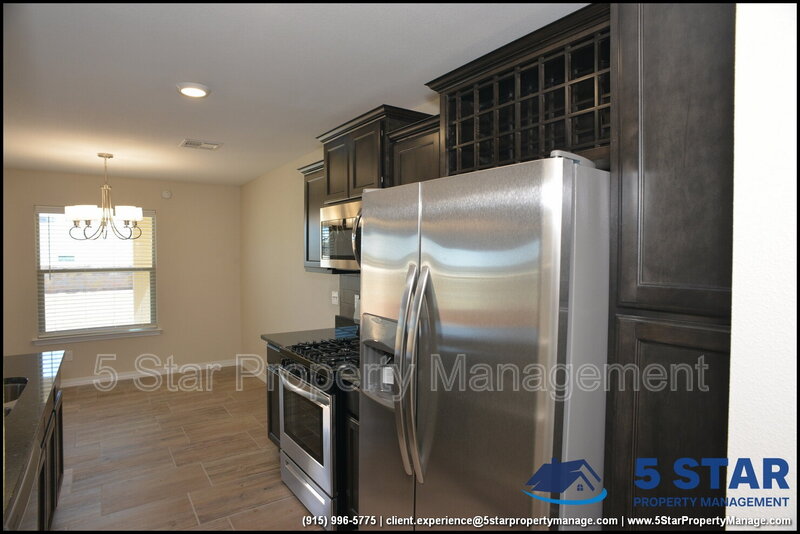 Discover the perfect combination of modern comfort and strategic location in this stunning duplex. This spacious 4 bedroom, 2.5 bathroom home features a bright, open concept floor plan with elegant tile flooring and refrigerated air for year round comfort. The chef ready kitchen comes fully equipped with a refrigerator, dishwasher, and gas oven, flowing seamlessly into the dining and living areas which is ideal for family gatherings. Nestled in a rapidly growing community, you are just minutes from the historic Mission Trail and Bulldog Championship Park, with quick access to Loop 375 and I-10 for an easy commute to Fort Bliss and downtown El Paso. Enjoy the convenience of an attached two car garage and a private backyard ready for your personal touch. Experience the tranquility of Socorro living with urban amenities just around the corner. Move in with ease using our Deposit Free Renting service through Obligo (available to qualified renters; fees apply). For Showings information and availability, please call at 915-320-7027 By: 5 Star Property Management | SOCORRO Texas Rentals | SOCORRO Property Management | Property Management in SOCORRO *Important: Information is deemed reliable but not guaranteed. All information is submitted subject to errors, omissions, change of price before the lease, or withdrawal without notice.