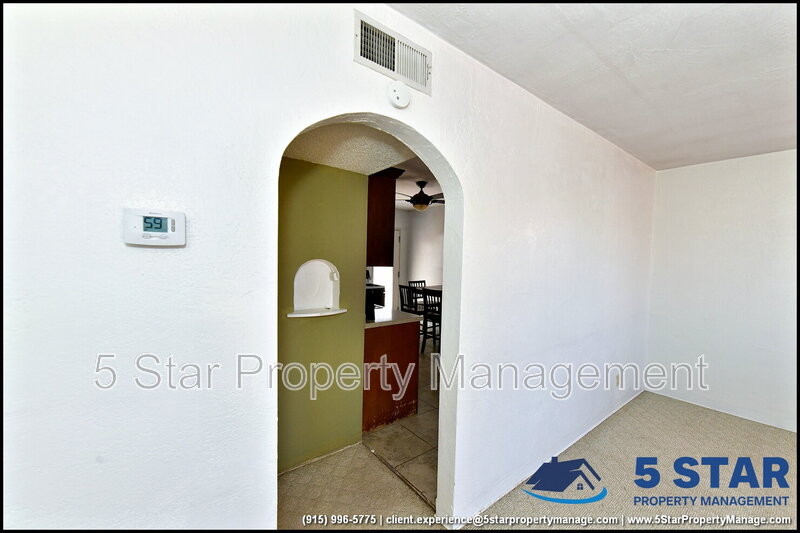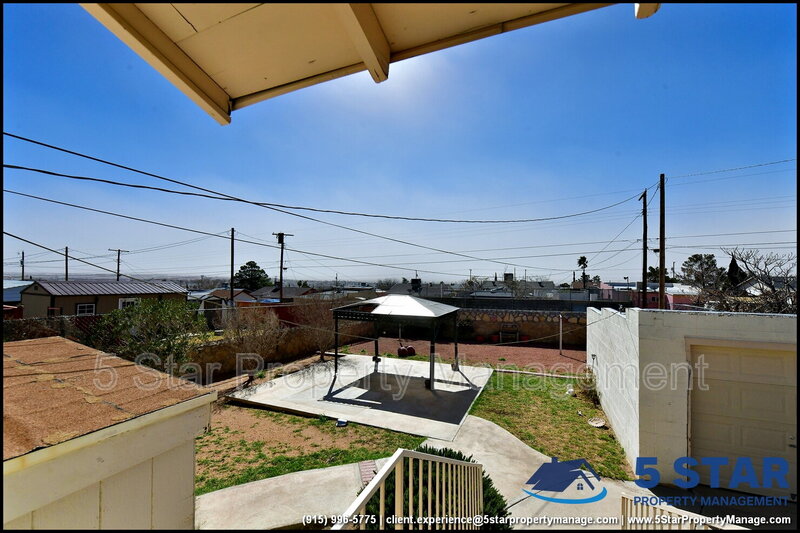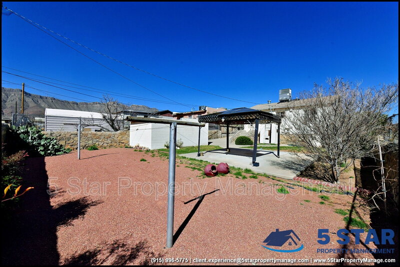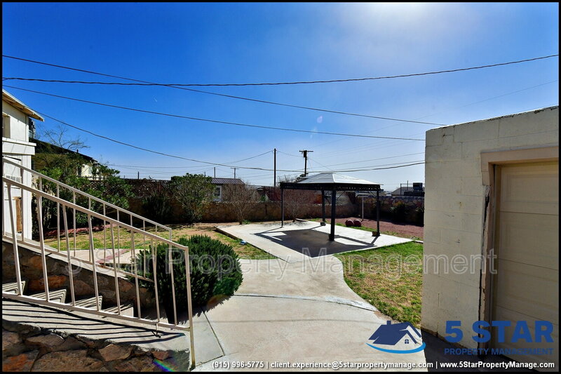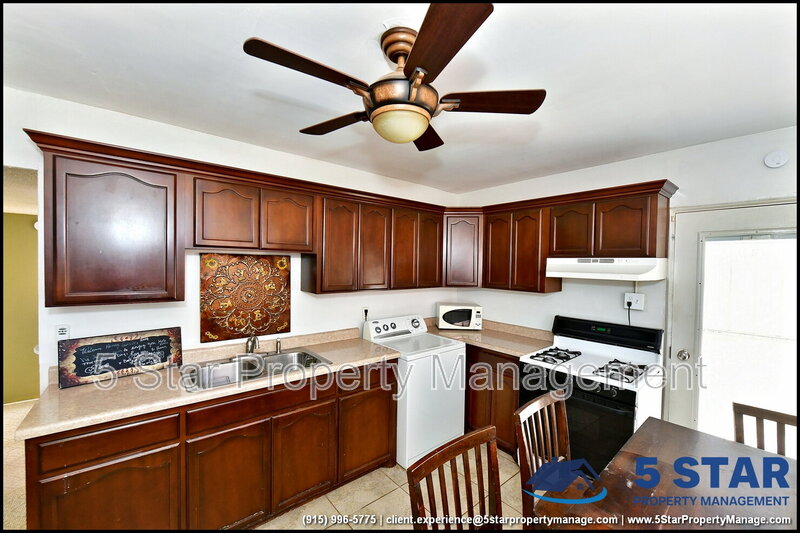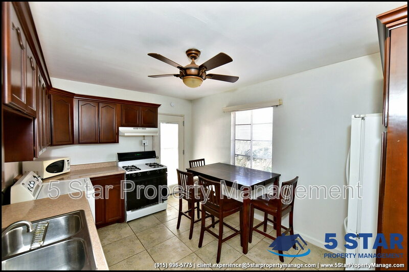 Sunlit mornings and warm wood tones set the mood in this classic single story home in Central El Paso. Rich espresso cabinetry lines the kitchen, paired with durable tile flooring, a gas range, and generous counter space that supports both daily cooking and weekend hosting. A cozy dining nook sits beside bright windows, while ceiling fans throughout encourage steady comfort. The full bath showcases tiled surrounds and updated fixtures for a clean, cohesive look. Outside, a spacious backyard features a covered gazebo patio and open concrete pad designed for gatherings under wide desert skies. Located near UTEP, the Franklin Mountains, and Scenic Drive Overlook, this residence offers convenient access to culture and outdoor recreation. Deposit-Free Renting service to Obligo qualified renters, fees may apply. For Showings information and availability, please call at 915-320-7027 By: 5 Star Property Management | PASO Texas Rentals | PASO Property Management | Property Management in PASO *Important: Information is deemed reliable but not guaranteed. All information is submitted subject to errors, omissions, change of price before the lease, or withdrawal without notice.