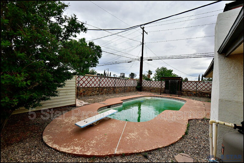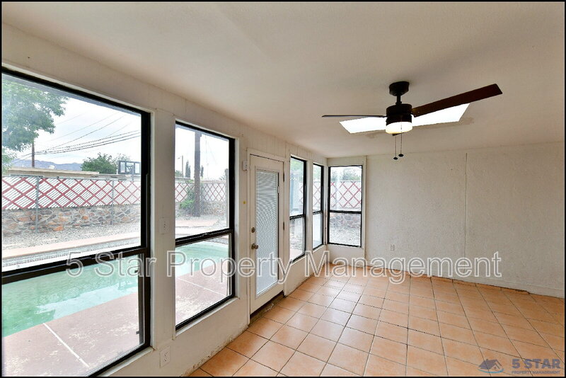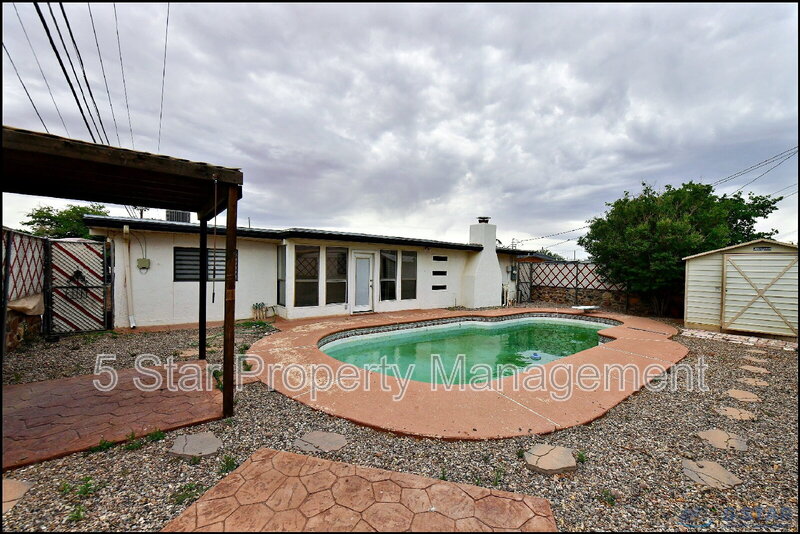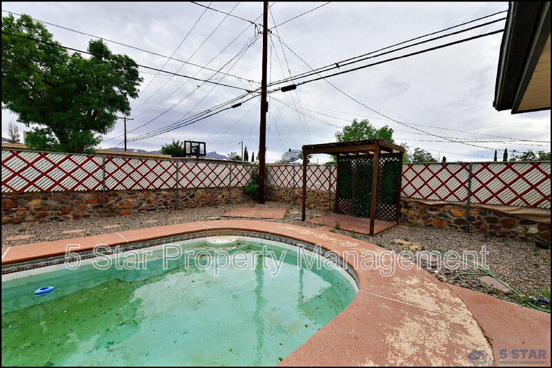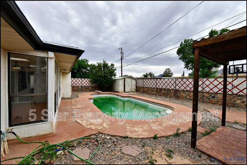 Designed with usable square footage in mind, this Temple Hills rental offers more than a standard 3-bedroom layout. The interior opens with tile flooring, neutral paint, and a bright living area, then expands into a second family room anchored by a tiled fireplace wall for a clear gathering space. The kitchen delivers a modern look with light cabinetry, solid-surface counters, stainless refrigerator, gas cooking, built-in microwave, pantry storage, and a large sink, all arranged for efficient prep and storage. The floorplan separates the sleeping areas from the main gathering spaces and gives the primary bedroom extra room that can serve as a lounge spot, office nook, or extended dressing area. Outside, the backyard is built for utility and entertaining with an enclosed patio, in-ground pool, walled perimeter, and detached shed. Front and back landscaping keep maintenance more manageable. Deposit-Free Renting service to Obligo qualified renters, fees may apply. For Showings information and availability, please call at 915-320-7027 By: 5 Star Property Management | EL PASO Texas Rentals | EL PASO Property Management | Property Management in EL PASO *Important: Information is deemed reliable but not guaranteed. All information is submitted subject to errors, omissions, change of price before the lease, or withdrawal without notice.