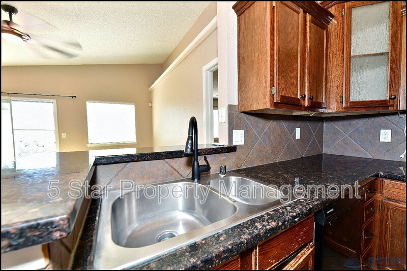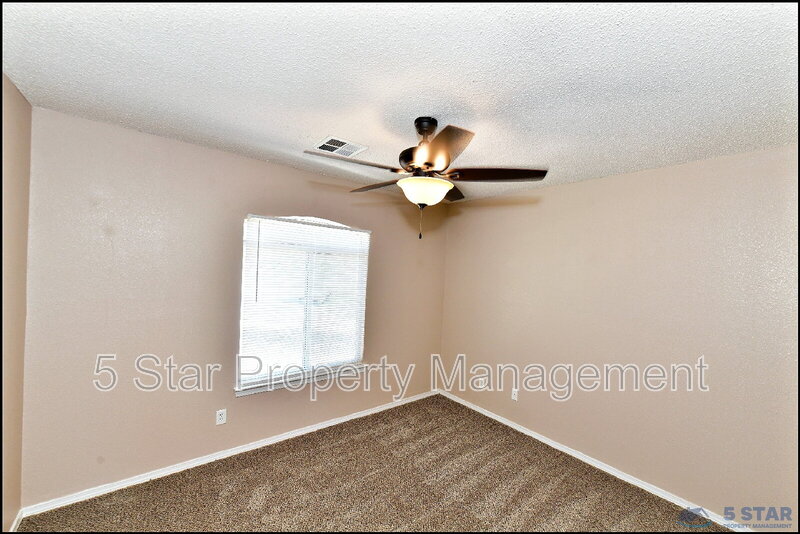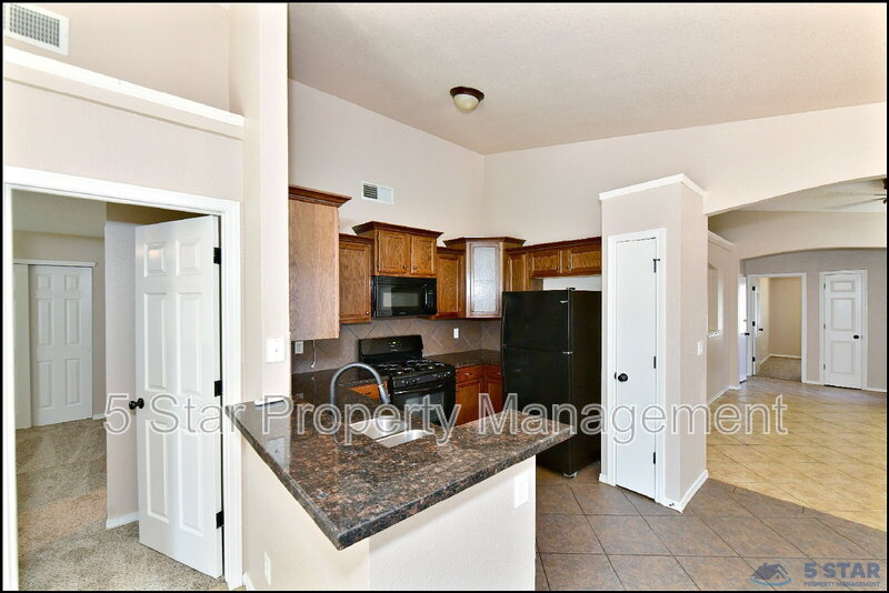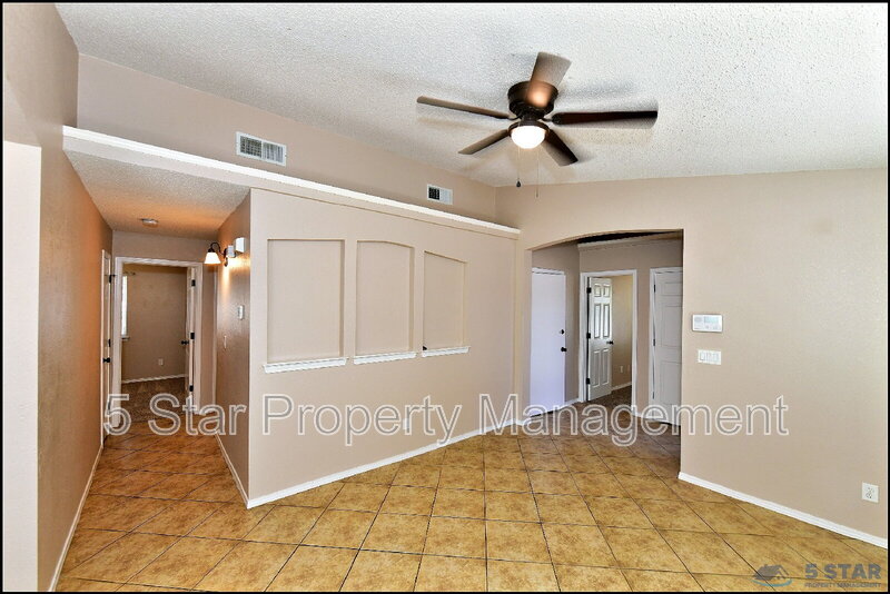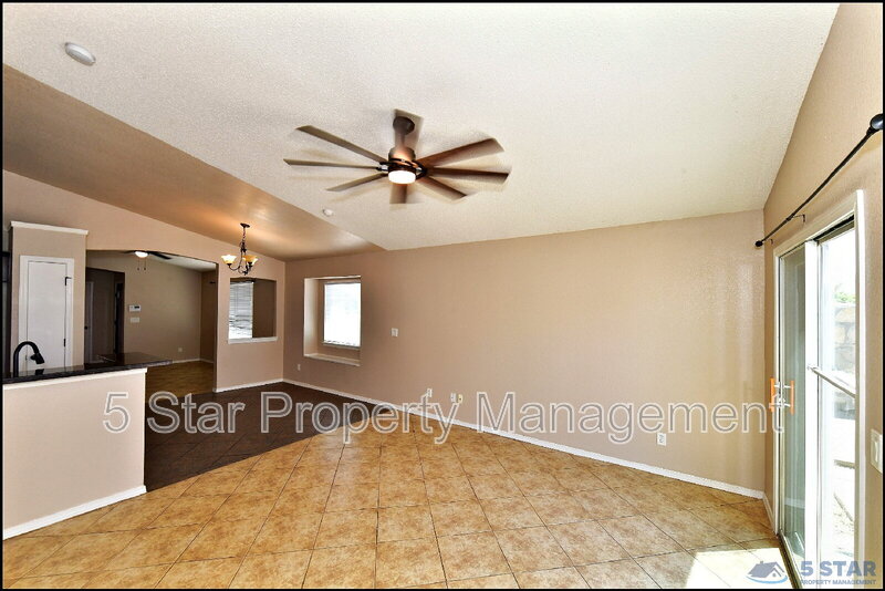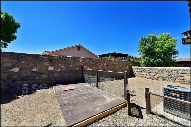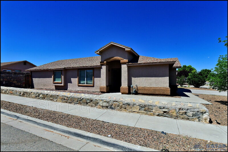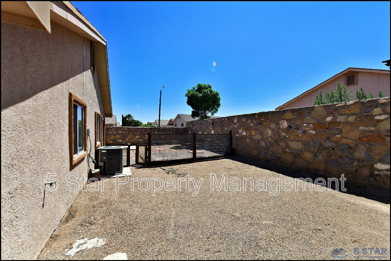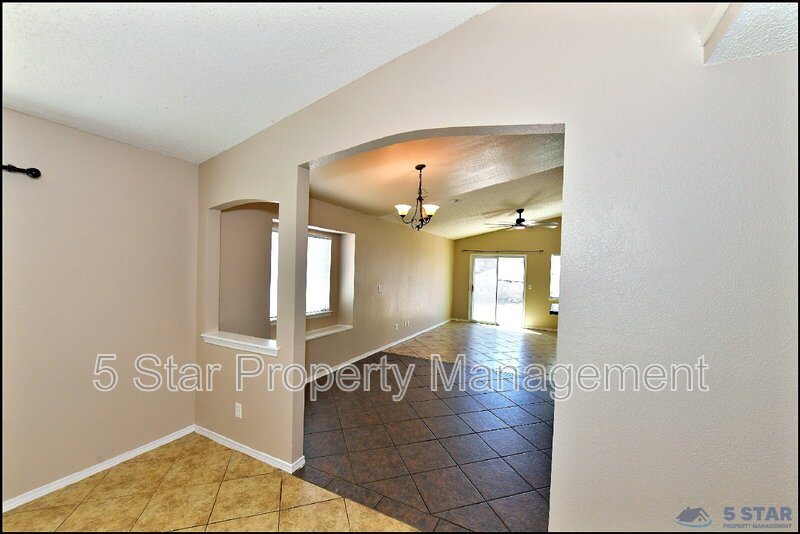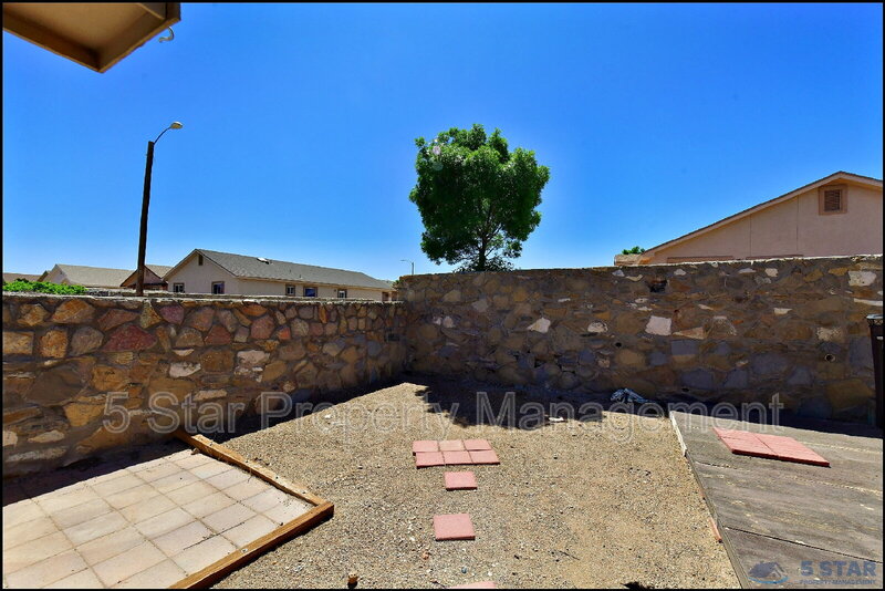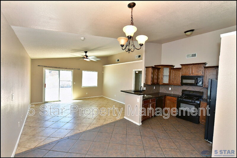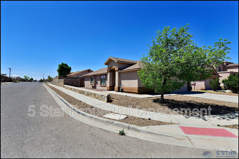 Set on a corner lot with an attached garage, this single-story home delivers practical space inside and out. Interior features include neutral wall tones, tile flooring across the main circulation areas, carpeted bedrooms, recessed wall niches, and a bright open feel supported by multiple windows and sliding-door access to the yard. The kitchen opens to the living and dining areas and includes dark countertops, wood cabinetry, pantry storage, and a black appliance package with refrigerator, dishwasher, microwave, disposal, and gas range. A den plus an additional family room create flexible use for work, hobbies, or separate seating areas, while the primary bath offers dual sinks and a roomy vanity setup. The backyard is fully enclosed with gravel landscaping and a broad open area that is easy to maintain. Enjoy convenient access to Loop 375, retail, and everyday destinations in East El Paso. Deposit-Free Renting service to Obligo qualified renters, fees may apply. For Showings information and availability, please call at 915-320-7027 By: 5 Star Property Management | EL PASO Texas Rentals | EL PASO Property Management | Property Management in EL PASO *Important: Information is deemed reliable but not guaranteed. All information is submitted subject to errors, omissions, change of price before the lease, or withdrawal without notice.